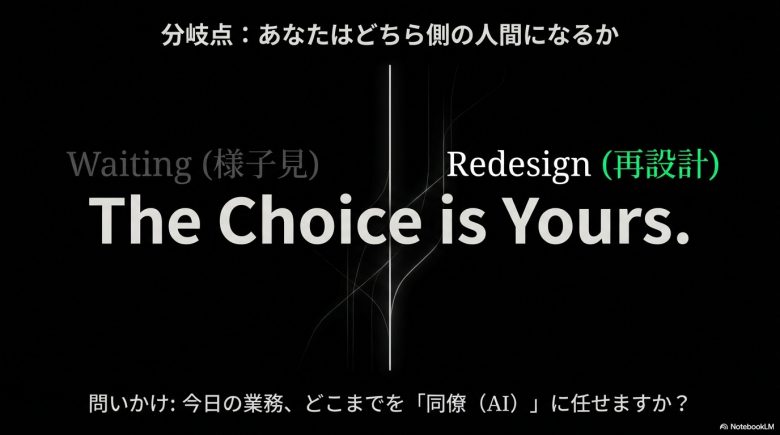 「あなたは様子見(Waiting)しますか? それとも再設計(Redesign)しますか?」